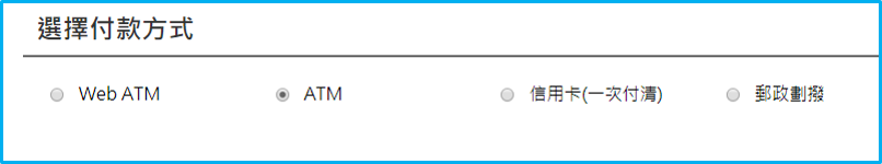 進入特約機構付款流程,選擇「ATM」轉帳付款方式。